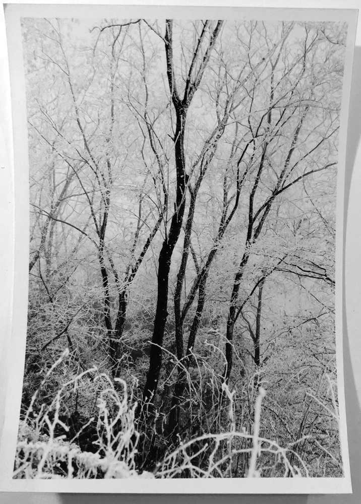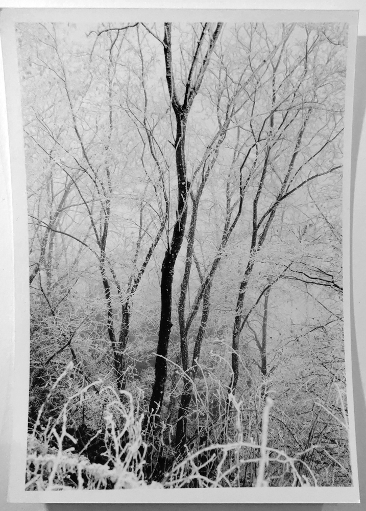 Geht es wirklich darum, Lichter und Schatten einzufangen? Solches brauchen wir allenfalls im Arbeitsprint, um herauszufinden, wo Fleisch am Knochen ist und wo wir reine Tonzonen haben. Beim Splitgraden wird die Belichtung in den Lichtern bestimmt und ein gewünschter Grad an Modellierung bzw. Detailzeichnung oder Rhythmisierung bzw. Blickleitung ermittelt. Das kann man am ehesten mit dem Negativprozess vergleichen. Auch dort wird belichtet, wenn auch auf die Schatten - logisch: auf die erste Schwärzung, wie beim Positiv. Und dann wird entwickelt, auf die Lichter, das ist die maximale Schwärzung, ebenfalls wie beim Positiv. Als Gradationswandelpapiere noch nicht so populär waren, arbeitete man zur Gradationssteuerung mit weich und hart arbeitenden Positiventwicklern. Heute bestimmt man die Gradation, also den Aspekt von Dmax, mit der Gradationswandlung. Aber: auch in der Negativbelichtung und -entwicklung platziert man Tonwerte, und da kann es auch passieren, dass diese ganz beabsichtigt Zeichnung verlieren. Dass in dem Winterbild mit dem Nebel eine ganze Waldlandschaft hinter den Bäumen steht, hat mich nicht interessiert. Ich wollte lichtgefüllte Atmosphäre, keine technisch korrekte Waldwiedergabe.