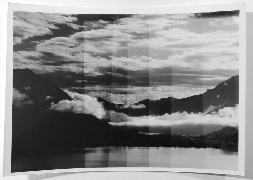 In den späteren Bildern aus dem Atelier erfolgt eine stärkere Auseinandersetzung mit dem Medium und seiner Tonalität, mit dem Blickwinkel, mit Sicht auf den feinen Print, Tonwertdefinition, das Leuchten des Prints, die tonale Skala, weniger Schwarz-Weiss, weniger Symbolik an sich, sondern freiere Verwendung der Tonalität. Mit dieser Auseinandersetzung werden die Bilder für meine Begriffe auch tonal differenzierter in den Lichtern. Was auch das Chaos in den Lichtern akzentuiert, vom Soliden in die Differenzierung - Wichtig finde ich, dass es da noch eine Differenzierung gibt und nicht alles in Weiss sich auflöst. Dies als Schlüssel für universellere Aussagen, Bildwelten: Baumformen kommen so hell, dass die nächste logische Form die Auflösung der Tonalität in reinem Weiss darstellt, also Wolken, Wasser in der Atmosphäre, was einen zeitlichen Werdegang ermöglicht, von der festen, geschlossenen, formbinnenstrukturierten Form über Langformen mit Richtungsbindung, die sich dann ausdifferenzieren in Details, die jedoch nurmehr eine schwache, aber feste Zeichnung haben, worauf der Übergang in diffuse, amorphe Nebel. Und Wolkenformen, in formübergreifenenden Formtonalitäten den logischen Abschluss bilden.