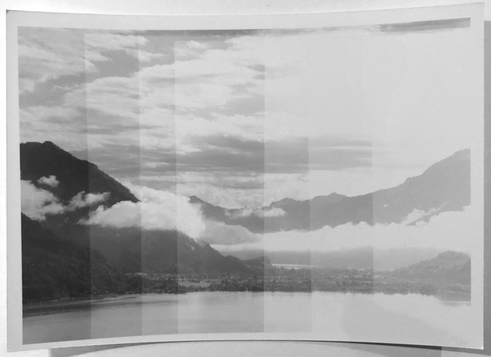 Jetzt kommt der dritte Schritt. Wir haben mit beiden Probestreifen also eine Kombination herausgearbeitet, ein Dupel aus (#0,#5), z.B. (16s, 20.2s), um bei den Werten der Bildbeispiele zu bleiben. Das heisst: wir belichten bei diesem Negativ auf diesem Papier immer zuerst durch den #0-Filter mit 16 Teilen und dann durch den #5-Filter mit 20.2 Teilen. Wenn wir die Belichtung anpassen, beziehen wir die Anpassung auf beide Teile, faktoriell. Das Verhältnis von (Weich,Hart) bleibt immer gleich. Ich kann es freilich später anpassen, in einer neuen Edition. Aber wenn ich die aktuelle Bildwirkung reproduzieren möchte, bin ich beim Dupel (16s,20.2s).